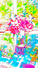 Next I used a favorite image of mine that is quite colorful, but I like the colors to be a bit more delicate with the shades and tints of colors providing a lot of the detail of the image. The colors should be clear and colorful, like a watercolor, but should not turn into electric teals or Pepto-Bismol pink. It depicts spring flowers in a Mason jar on my reflective, glass table on the screened-in porch with the trees leafing out in the background. While these aren’t colors that match anything in the real world, there are limits as to how far colors can be changed before the colors don’t look right. And, since I’m the artist, I know what I want it to look like and I want it to print/press what I see on the screen. This file is a PNG and has no transparent pixels because the image does not have a background that is white or non-printing.