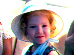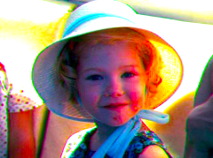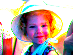 Desaturating gives an interesting appearance, much like a hand-tinted black and white photo. Stands to reason as desaturation will remove the color taking it to pure gray tones (white and black being the lightest and darkest “pure gray”). Removing the gray and pushing it to the purest tones can really change real-world colors. Look at the skin tones and how they move to unnaturally orange-red skin tones. The blue bow and dress still look cute (nobody knows how blue that bow is supposed to be), but everybody knows that child isn’t orange. In fact, the 3.000 saturation is so oversaturated that the colors are beginning to make the right side of the face look deformed. The other images still look usable, though the colors are too bright and there’s a loss of detail from the original, but if one had never seen the original, it would still be a reasonable image. These pictures, particularly the right-most one, clearly has major color problems.